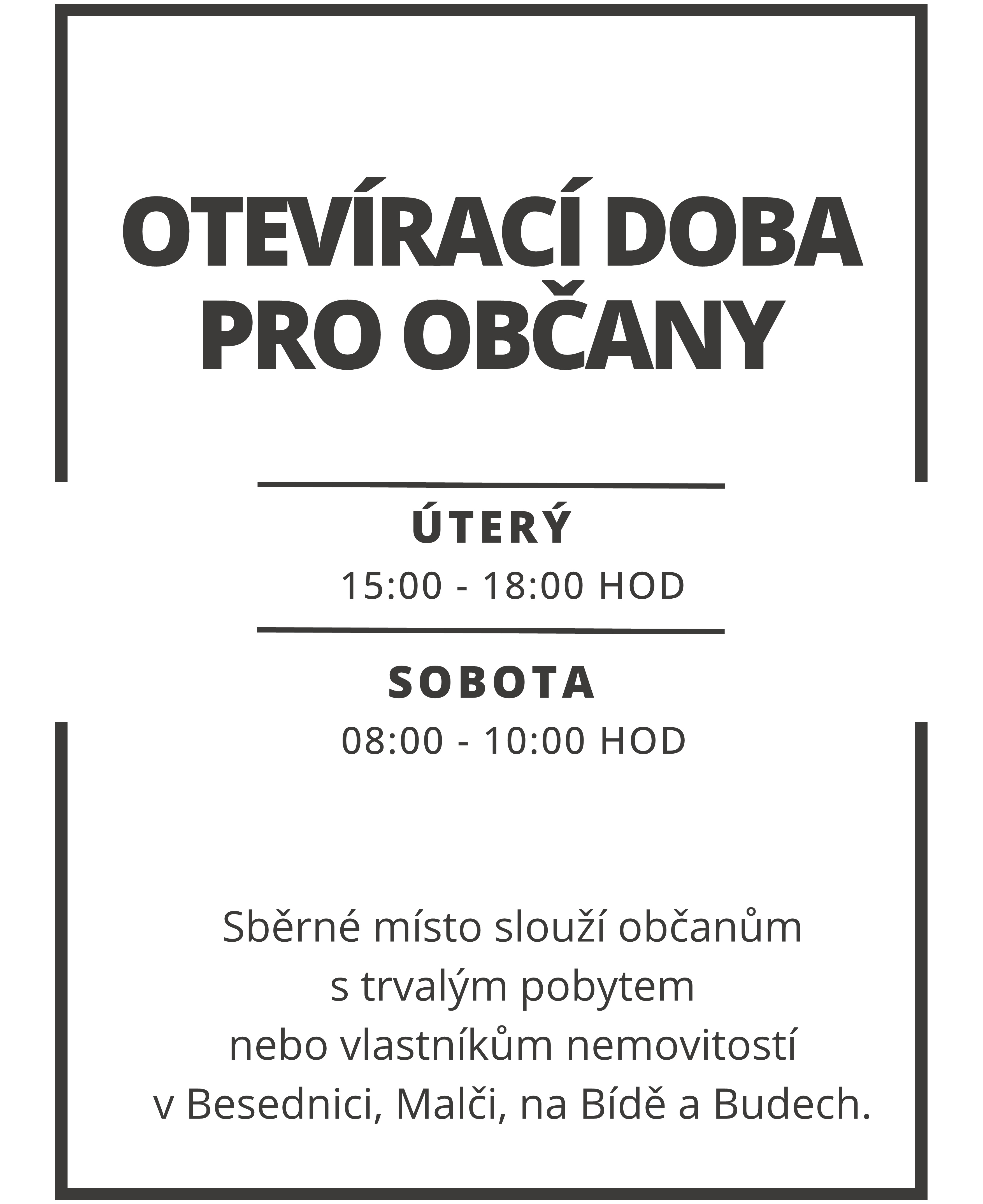 - Sběrné místo slouží občanům s trvalým pobytem nebo vlastníkům nemovitostí v Besednici, Malči, na Bídě a Budech.